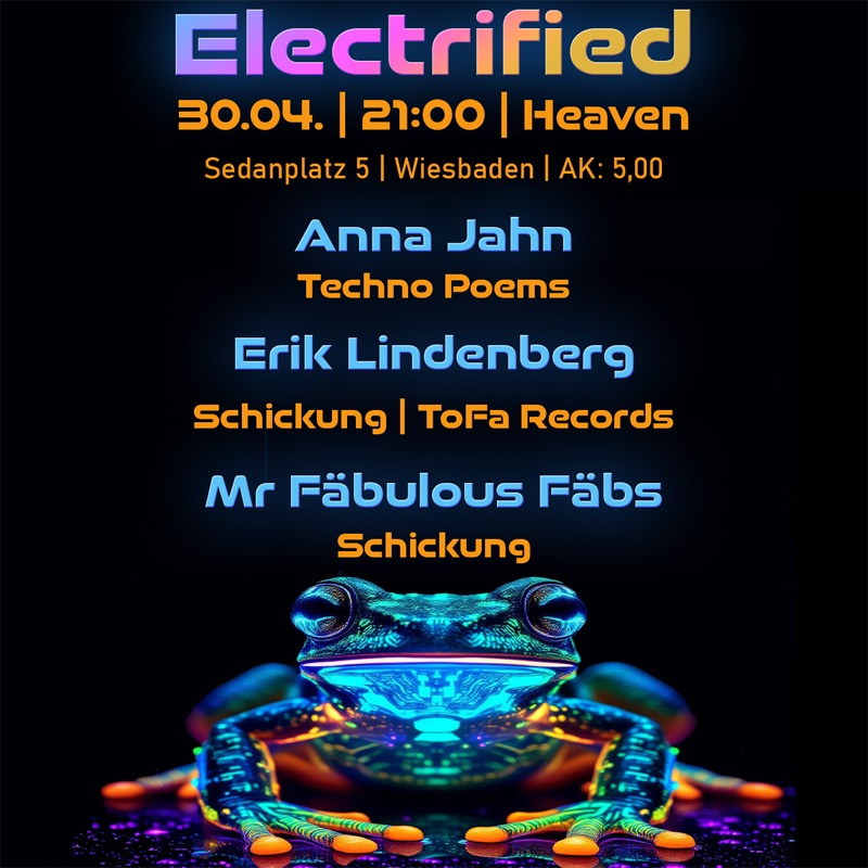 Schickung verlost für die Party 2x2 Gästelistenplätze. Um an der Verlosung teilzunehmen, schickt bis zum 26. April eine Email mit Betreff "Electrified" und Eurem vollen Namen an win@schickung.de oder nutzt das Kontaktformular. Viel Glück!